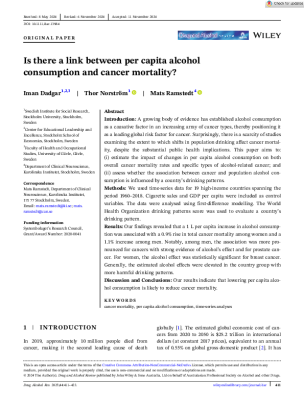 Diese Studie enthält Schätzungen der Produktivitätsverluste durch alkoholbedingte Krebstodesfälle in Europa.
