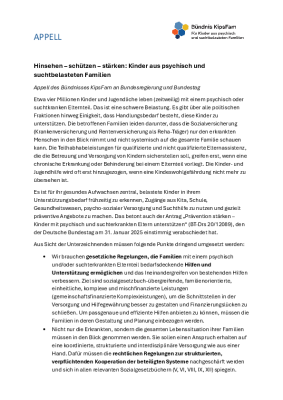 Appell des Bündnisses KipsFam an Bundesregierung und Bundestag.